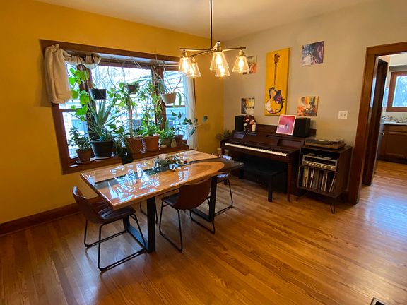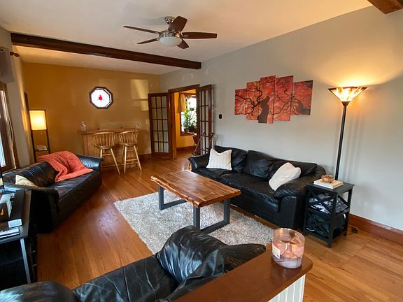Fantastic Location In Town close to the Downtown Square Shops, Restaurants,and Activities. Charming Updated Ranch with Nice Large basement. Big wrap around front porch great for lazy days or relaxing evenings.When entering the home, you will love the generous living room with Hardwood Floors, fireplace, wooden beams and a beautiful rose window. The dining room has a bay window that is Awesome for plants. The kitchen has loads of counter space with High End Granite Tops and a generous pantry. All Stainless Steel Kitchen appliances are included. The two good size bedrooms are on the main floor. The house has all new windows in 2015, original hardwood floors, doors, and trim, It also has a whole house fan and a staircase to an upper attic for possible additional finishable area or just storage. Attached Garage. Check out this Beautiful Home with The Location You Dream About!