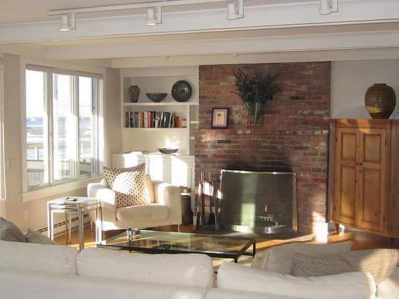 Condominium - Provincetown, MA This impressive two-story waterfront townhouse offers breathtaking views from Truro to MacMillan Wharf and beyond. Located in the East End, this home offers an exclusive front brick patio surrounded by mature plantings perfect for summer grilling. The open floor plan promises unobstructed views of Cape Cod Bay whether you're in the kitchen, dining area or relaxing in the living room by the wood burning fireplace. The current owner created an office on the first floor to telecommute and could easily be opened up to maximize the living space. A sliding glass door leads to a waterfront deck with stairs to the beach. There are two bedrooms on the second floor. The spacious master bedroom has ample closet space, wood burning stove, windows on three sides, and two sliding glass doors leading to a large balcony overlooking the bay.