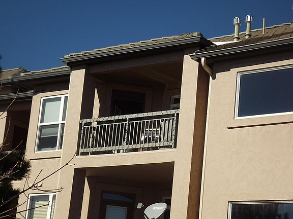 Cheyenne Mountain School District 12. Gas log fireplace in the Living Room. Two good size bedrooms and each with a bathroom. Washer and Dryer in the unit. All kitchen appliances. Two balconies. One car garage. 1098 sf of living space. This Condo is light and bright and move-in condition. Beautiful view of the mountains. Vaulted ceilings with ceiling fans. Gas heat and central air conditioning. This is a crime free/drug free property. No smoking allowed. Owner to approve any pet. Pet deposit $250 (refundable if no damage. Pet rent $75 per month. Tenant pays electric, gas, water and trash.