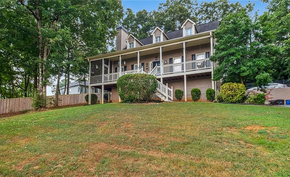 Looking for a million dollar view? Look no further, your next home is here! This charming Cartersville Cape Cod home has 4 bedroom 2.5 baths with a basement that could be used as your huge office, fitness center or movie room! Features of the home include a huge living room with vaulted ceilings and hardwood floors, and a spacious custom kitchen filled with tons of cabinet storage. Enjoy your morning coffee on the expansive front porch that includes a screened in side, perfect for all seasons! The primary suite is on the main level with his & hers closets, custom vanities and an expansive his and hers shower. The 3 bedrooms upstairs are spacious and perfect for families who simultaneously love intimacy and privacy! The backyard features a chain link fence perfect for your dog(s) relay races and secluded enough to enjoy a book on the hammock! Share your favorite tales around the built-in fire pit or enjoy family BBQs on the huge back deck. This home has so many great features to mention! Schedule your tour today to discover all the beauty and charm in real time! Close to all of the top attractions in Cartersville including restaurants, museums, walking trails and parks! Only 3 miles to downtown Cartersville and minutes to top-rated Bartow County schools! If any members of the showing party has an aversion to stairs, you can park in the upper driveway, just keep right past the garage doors and enter through the kitchen or dining room doors. The driveway can hold multiple cars and perfect for RV parking.