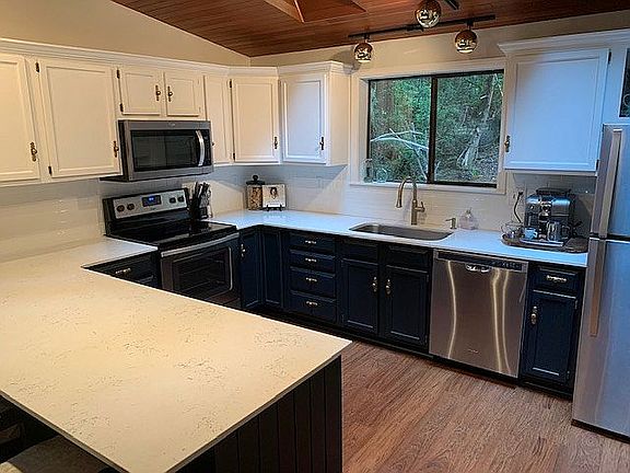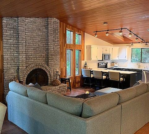 Text for showing 480-252-3773 Fully remodeled designer retreat tucked away in the coveted gated community of Hartstene Pointe on the northern point of Harstine Island. This luxurious 2br/2ba home has been meticulously updated with endless features: New water-proof vinyl plank flooring and baseboards, all new interior paint, refinished kitchen cabinets, stainless steel appliances, quartz countertops, subway tile backsplash, custom masonry fireplace with heat blower, T&G ceilings and walls, skylights, updated main bathroom with granite counters, vessel sink, subway tile backsplash and tub surround, oversized second bath/laundry room with brand new walk-in shower, subway tile surround, custom reclaimed wood vanity and new fixtures. The exterior features an expansive TREX deck with a peek-a-boo water view of Puget Sound, storage shed, freshly graveled private driveway and HOA approved plans for a 2 car garage. Walking distance to beach, tennis/pickleball courts, community center, heated pool, spa and workout facility make this an ideal weekend getaway or full-time resort-like home. All furniture and furnishings available on separate bill of sale. OFFER REVIEW DATE: Monday, July 13