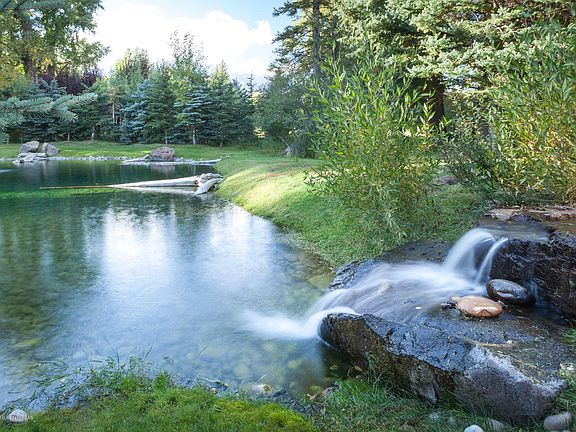 This stunning home is located at the base of the Grand Tetons in the quiet and private Solitude Subdivision. The Grand Teton view from this property is perfectly framed by thick tree groves surrounding the turquoise trout pond. The immaculate pond is a sight of it's own with clear fresh water from a dedicated well, lined with washed river rock, and an aerator for year-round operation. This flawless 4,456 sq.ft. home has been built and maintained with the ultimate care. The master suite features striking views of the Tetons and pond through the floor to ceiling windows. The master suite also features his and hers bathrooms and closets, a gas fireplace and a private patio. Guests can enjoy any of the three guestrooms, each with a private bathroom. All the main living spaces are ideally