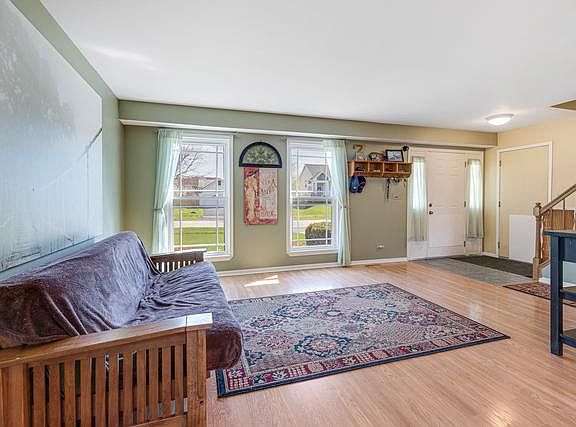Welcome to the fabulous neighborhood of Lakewood subdivision. Located down the street from a lovely park and less than a 5-minute drive to a Metra station. We have three bedrooms upstairs, two and a half baths, family room with vaulted ceiling by eating area and kitchen. Wood laminate and ceramic tile on the main floor, carpet upstairs in the bedrooms. This home is well maintained. All appliances stay. Major expenses taken care of. This home is solid, all needed is your finishing touches. Insulation in attic completely removed and blown in new with extra insulation. Fenced yard with reinforced posts installed 2019. 2018 Kitchen with new seamless Corian counters, backsplash and hot water heater. 4-year new roof; 8-year new HVAC, AC, Humidifier. 10-year siding, fascia and gutters. Huge fenced yard with large deck and two sheds is perfect to garden, barbecue and relax.