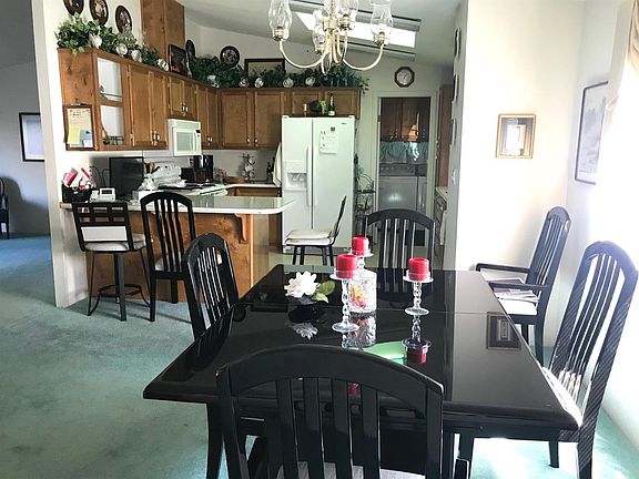 Desirable Meadows 55 plus Community. Beautifully maintained 1550 sq ft, 3 bedroom, 3 bath, manufactured home, with 4 year old roof & HVAC System. Great separation of bedrooms, Master is off the formal loving room, other two bedrooms & bath are located off the family room. Vaulted ceilings, open kitchen, with dining area, plus a separate utility room for excess storage. Two car garage is finished, attached to a covered breeze way, perfect for entertaining or relaxing. Lot is .16 of an acre, with drip system for irrigation, size of lot allows for garden area, off street parking or possibly a small shop.