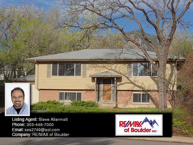 Remodeled bi-level with open, sunfilled floorplan in coveted Bear Creek Elementary School area of Table Mesa! Remodeled kitchen & baths, refinished hw floors, new carpet, freshly painted inside & out, new light fixtures, new front door & new garage door! Large deck overlooks private, over-sized lot! Oversized garage with space for workshop! Excellent location close to Table Mesa Shopping Center, great SOBO restaurants, Boulder's extensive pedestrian trail system, top rated K-12 schools & CU! Listing Agent: Steve Altermatt Company: RE/MAX of Boulder, Inc Phone: Email: sea2749@aol.com