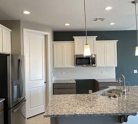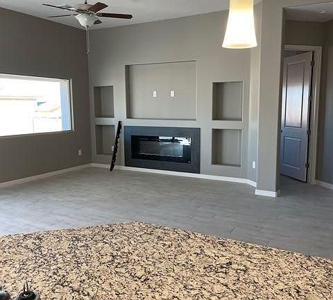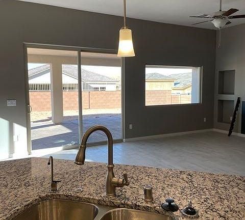 3 car garage- Huge extended patio cover in the backyard - Granite in Kitchen and Master bathroom - 8 ft doors throughout - Ceiling Fans with lights in all Bedrooms and Living room - Vaulted ceilings - Rain Showerhead in master - Upgraded cabinets - Fireplace - Water Softener and R/O system - Tiled Walk-in Showers - Tile and Carpet Flooring - Covered Patio and Stained Stamped Concrete on Patio and Driveway