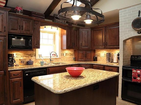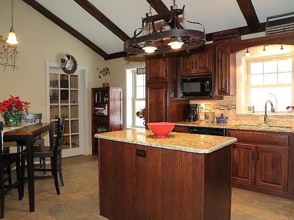 One floor country Ranch home. Gorgeous new kitchen. Granite counter tops. New cabinets, flooring and granite covered island. Living room with fireplace, family room with fireplace with walk-out to huge brick patio with wooded view.