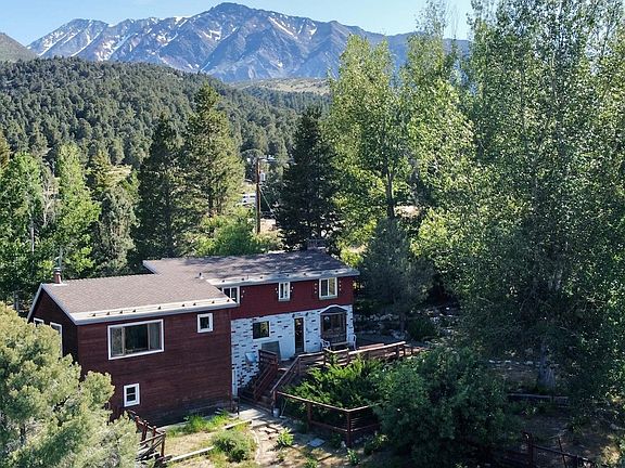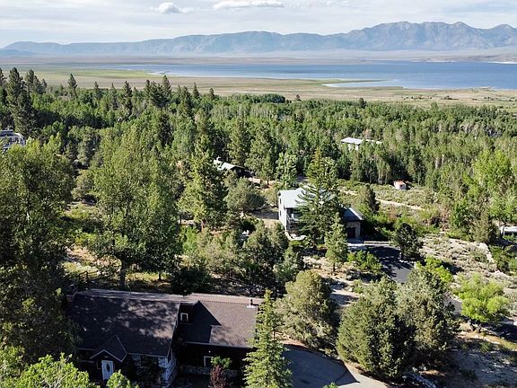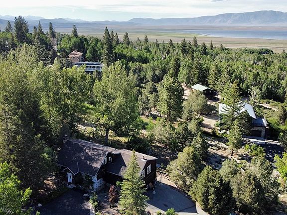 Priced to sell fast! Nestled in the aspens and cottonwood trees, this vintage home on almost 1/3 acre was originally built as a fishing lodge. A two car garage and primary bedroom were added to bring it to 4 bedrooms and 2 baths. Stunning views of Crowley Lake and White Mountains. The fully fenced and terraced yard is amazing with a stream, a water wheel and a pond! There are plum trees, apple trees and berry bushes in the spacious yard and even a chicken coop! Peonies, rose bushes, and many other flowering shrubs decorate the exterior. There is no well on the property. Owners have tapped in to uphill neighbor's well with permission but that will end at COE. Buyers will need to drill their own well. If Buyer needs a loan to purchase, cost of well is approximately $80,000. The property is being sold "As Is". Drone photos show white painted brick exterior - all siding is intact. Roof is only 6 years old. Sellers can not make concessions for any of Buyer's requested repairs . Owners are highly motivated to sell.