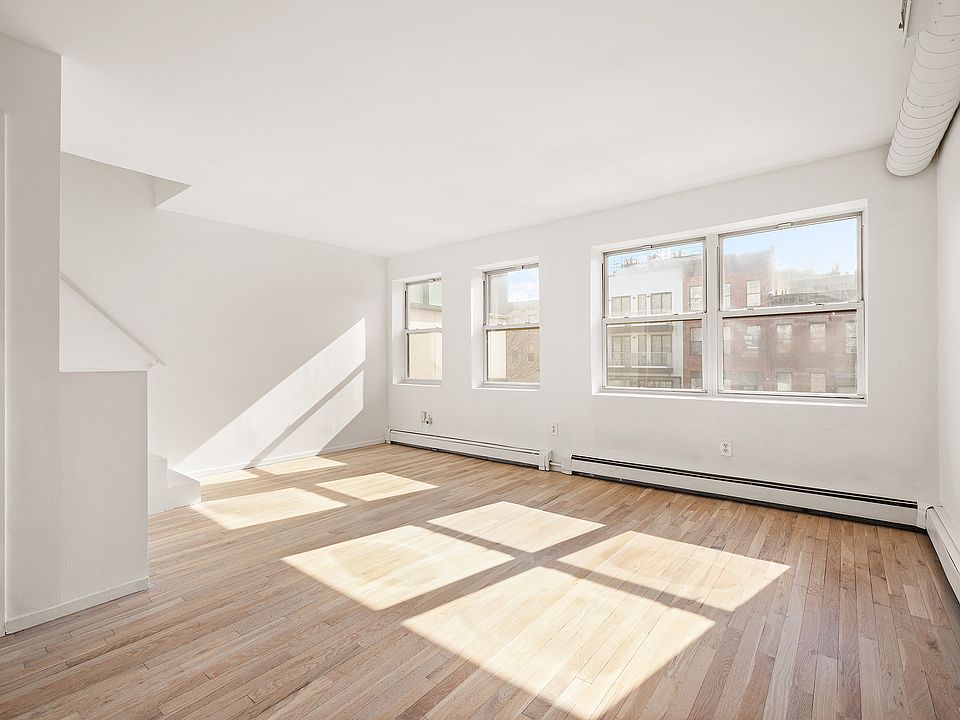 This bright and spacious duplex apartment is one of a kind. The open living/dining area is filled with light all day long thanks to four oversized, south facing windows and a skylight. There are two bedrooms on the first level of the apartment, one with a large walk-in closet. Both are located in the back of the building with large North facing windows providing quiet and garden views. The kitchen is fully renovated with stainless steel appliances and a tiled backsplash. Up the staircase you will find a third bedroom/office that leads out to a 700 SqFt. private rooftop. Some other features include central air, built-in storage throughout and a washer/dryer hook up (please inquire for more details). This boutique condominium is located in Bedford Stuyvesant with many exceptional coffee shops, bakeries and restaurants nearby. Speedy Romeo, Place des Fetes, Welcome Home, Clementine Bakery, and Ursula to name just a few! Transportation is made easy with the G train less than a block away and the A/C trains nearby. Pets are case by case.