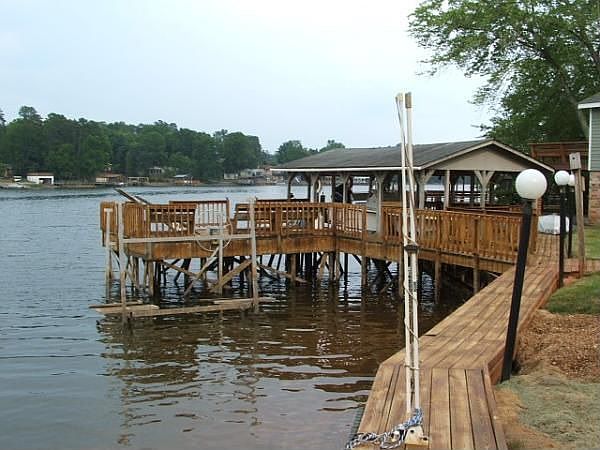Spacious lake front cottage, well manicured lawn has a gentle slope to private pier on Badin Lake. Pier includes seadoo ports and boat lift. Large deck areas - deep water with nice lake location - most furnishing negotiable.