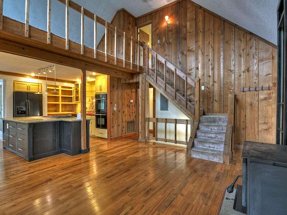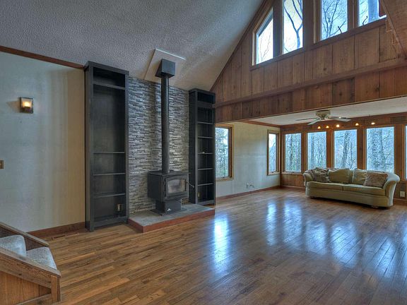 PRICE REDUCTION ~ Looking for a deal on a Mountain View home? This investor special needs some cosmetic TLC but the spacious, adorable, quirky home has all the potential to be a great investment and a gorgeous home! Charming Cottage-Feel Exterior with two car garage~ The Potential is Unlimited with the Wall of Windows, Large Kitchen and Oversized Island, Double Oven and 6 Burner Gas Stove; Home has woodburning stove and rustic wood accent wall, and Large Dining Area. Main Level features Open Concept Living Room/Kitchen/Dining, Pantry, Bedroom and Full Bathroom with soaking tub and walk in shower, and stairs off kitchen to Large Unfinished attic space that would make a great bonus room! The upper level has another bedroom, a half bathroom, and open loft area. The finished terrace Level has second living space, full bathroom, private deck, and rec room/possible bedroom. Great Mountain Views with the Potential for even Greater Views with a little vista pruning! Perfect Home and Area for a vacation rental or full time home located in sought Walnut Mountain; amenities include gated access, several nature trails, multiple stocked community lakes, waterfall, creek picnic area, olympic size swimming pool, tennis and more!