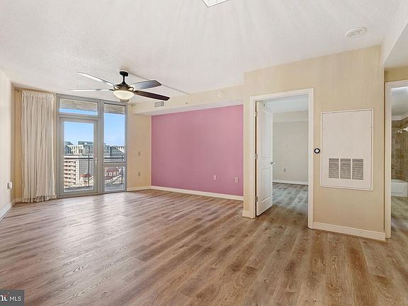 Open 1 to 3 pm, Sunday, December 19 - Washington Monument view and fabulous sunsets can be enjoyed in this one bedroom with large balcony and assigned parking. The unit features many upgrades. Flooring is recently installed and is a high end, waterproof LVP. The large walk in closet has California Closets and ceiling fans have been installed in both the living room and bedroom. The living room has a dining area with a chandelier. In addition, the range has been upgraded as well as the washer-dryer. The parking is convenient to the elevator in the underground garage. The condominium is full service with a 24 hour concierge, fitness room, rooftop pool and grills, ELounge and more. The building is conveniently located in the Mount Vernon Triangle near Metro, Safeway, restaurants, museums and theater. And it is just a short walk to the Capital One Arena and City Center. This condominium is VA approved