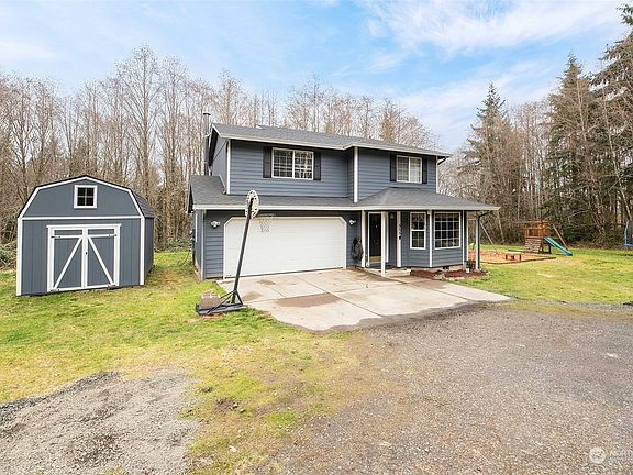 Looking for a tranquil retreat in Longview? This charming property includes two parcels, totaling 5.25-acres in the sought after Bunker Hill neighborhood, offering a picturesque setting beside a creek. This home features 4 bedrooms + 2.5 bathrooms, the bright and colorful interior offers a beautiful retreat surrounded by trees. There is a wood stove in the garage allowing for comfortable use, year round. Newer exterior paint and roof within the last few years. Entertain guests inside and out at this property, with a play structure, fire pit, creek, and plenty of space to play. There is an unfinished treehouse waiting for your customization, and two storage sheds ready for all of your outdoor supplies. Schedule a showing today!