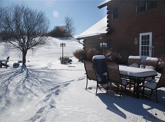 Custom built log home nestled in Apple Orchard Estates on 3 manicured acres overlooking Mahoning Valley. Home boasts lofted ceilings, open floor plan, exposed beams, hardwood flooring & sky lights. Living room has large windows & floor to ceiling stone fireplace. Chef’s kitchen was designed sparing no detail. DCS commercial stove, stainless appliances, large buffet island with 2 work sinks. Attached antique rustic pantry closets. Inlaw suite/guest quarters with plumbed kitchen 2 beds, bath & living room. Covered front porch perfect for relaxing & enjoying the spectacular views. 1st floor master with huge walk in closet. Full finished basement perfect for entertaining. Basement includes large closet for storage, wine & utility room. Mature manicured grounds are perfect for gatherings. Paver patio leading to 40x20 fenced in-ground pool with 9ft diving well. Oversized 2 car garage with workshop. Paved driveway. Hurry up & schedule your exclusive viewing today!