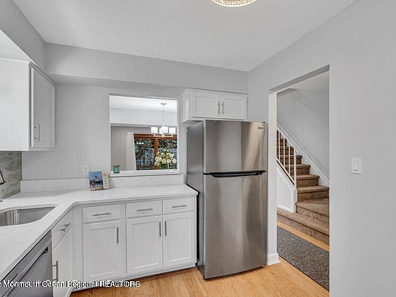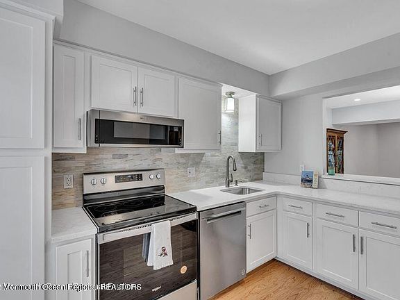 The Commons of Spring Lake Heights, a small complex of 24 units set in a meticulously landscaped courtyard. The setting is reminiscent of a page out of a story-book with a tree lined brick pathway leading up to this updated 2 bedroom end unit townhouse. The kitchen features brand new S/S appliances, countertop, backsplash and floors. Newly added recessed lighting and new floors updates the dining room and living room. A sliding door takes you to an awning covered patio in the back yard. Both bedrooms are on the 2nd floor with new W/W carpets.. A ''jack & jill'' bathroom w/tiled shower connects the dressing area with a new vanity. Laundry room is accessed in the hallway and attic storage is plentiful. This charming community is only steps from Spring Lake and just 6 blocks to the beach.