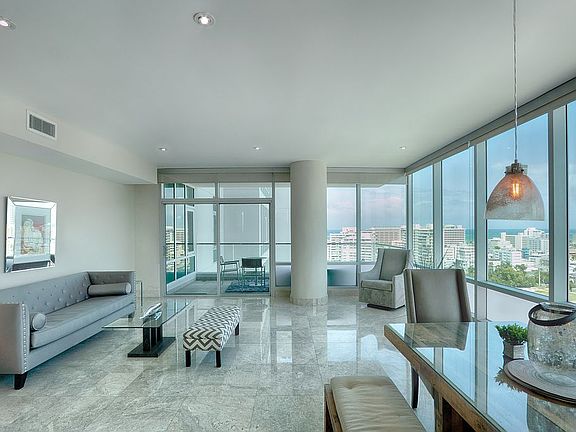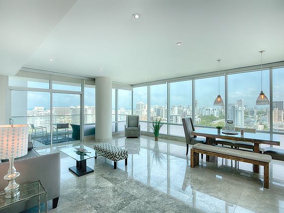 This state-of-the art apartment boasts ocean, Condado Lagoon and city views. Enter through your private lobby, leading to an open layout living-dining room and kitchen perfect for entertainment. The unit features 3 en-suite bedrooms plus a powder room, family room, laundry room and a spacious ocean view terrace. A private oasis in the Miramar Arts District, Cosmopolitan features top-of-the line finishes and resort amenities. Marble floors, floor to ceiling glass windows, open spaces and light filled rooms complement the finest services in one of San Juan's most luxurious buildings. This residence is also available to lease for $6,500 per month.