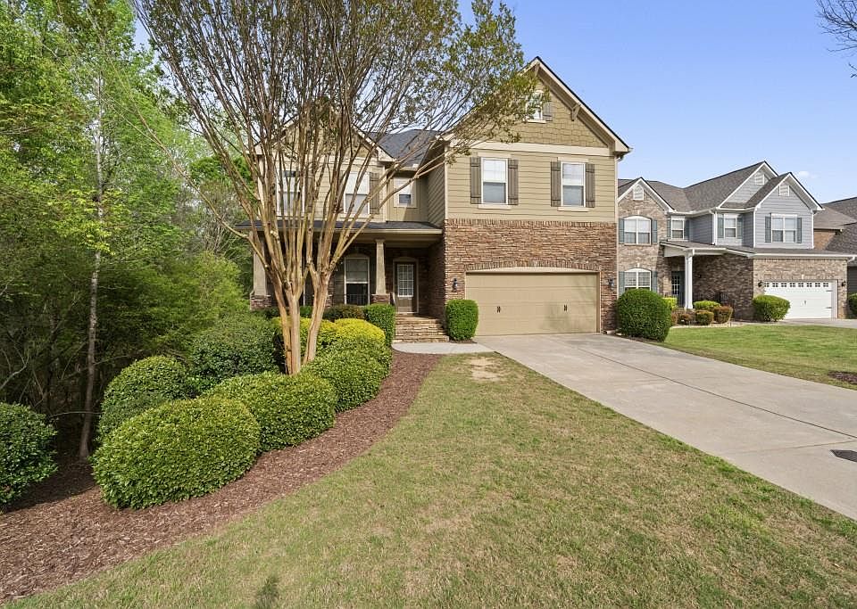 Meticulously maintained Craftsman-style home with a full finished basement situated on a private lot backing to woods and the Big Creek Greenway. Spacious kitchen with stained cabinets and granite countertops overlooks the great room. Guest suite on the main level, with owners' suite and 3 secondary bedrooms upstairs. Outdoor living space includes an oversized deck with stairs to the yard and a covered patio on the terrace level. The finished terrace level has a large rec room, bedroom, full bath and a wet bar. The roof was replaced and the exterior was painted in 2020. The neighborhood has its own private gated entrance to the Big Creek Greenway and a pool and clubhouse.