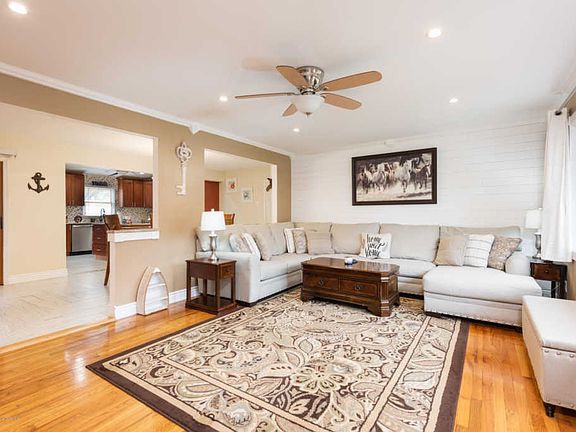Come see this very beautiful and updated ranch with large master bedroom with new master bath and walk in closet 3/4 good size bedrooms 4th in basement or makes a great home office Hard wood floors throughout.. Gas fireplace.. Custom crown molding and accent wall.. Both first floor baths are NEW.. New Kitchen with Granite and SS appliances.. Extra cabinets in dinning room.. Full Finished basement.. Sliders from kitchen and dinning room to the screened porch with New windows.. custom build outdoor table..New Roof.. New decking.. New pool liner.. Vinyl fenced fully.. Storage shed.. Close to the NYC ferries.. Walk to town...Belford Brewery..Dunkin Donuts.. Pizza.. Belford Bistro.. Bar.. Ice Cream...More and More...