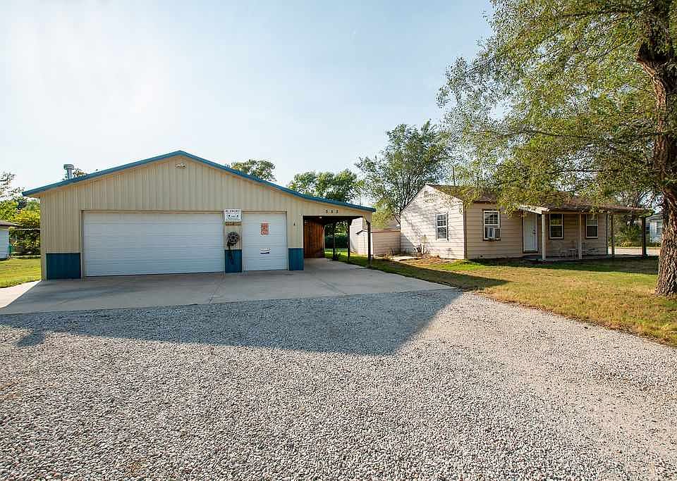 2 Properties on one lot! Small home with 2 bedrooms and bath with carport built in 1952 And drumroll please....Your very own HD shop/home built in 2010 You can check off all boxes - low maintenance building with living quarters and room for Harley Davidson, boat and/or RV storage. The building is a well constructed wood/metal frame structure with metal roof. It has a modern living area, kitchen, bedroom and a full bathroom. Very efficiently and tastefully designed. This is perfect for entertaining or family gatherings. 40 ft pod is included, standard width, tall version, can be picked up for transport.