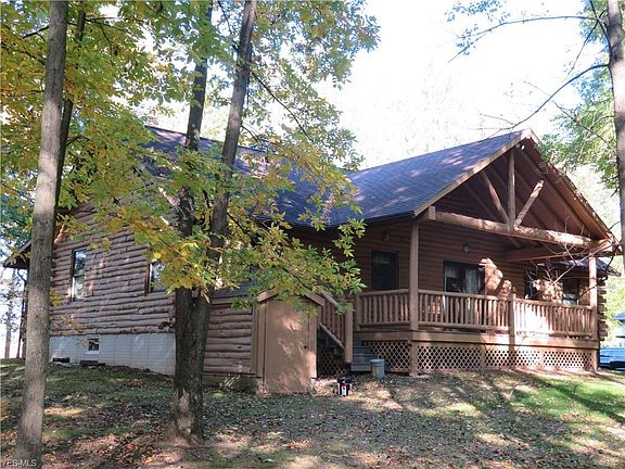 Peaceful, Beautiful and Private....This log home is amazing at every turn. Two LARGE covered porches for relaxing enjoying nature and entertaining. Walk into the large breathtaking open great room with amazing cathedral ceilings with exposed beams, wood floors and stone fireplace. The great room opens to the dining area which spills out to the large covered private porch... The kitchen offers custom cabinets and is centrally located for entertaining of keeping an eye on the kids. The master suite offers a beautiful bath with custom cabinetry... An office or den or 4th bedroom is right off the main living area right next to the first floor laundry area. Two other beautiful bedrooms complete this one of a kind home. The basement has poured concrete walls and is a walkout to the backyard. The home also offers a hardwired generator. Outside you will love the private feeling with the wooded lot and almost 6 acres. A huge outdoor shop/garage/mancave area with barn in the back of the shop perfect for animals if you wish. Small pond to the left of this property offers water for surrounding wildlife. This home is truly one of a kind and a rare find in this crazy market. Call for your showing today!