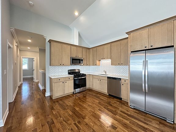 We now offer virtual video tours of all of our apartments! Schedule a virtual tour and rent this apartment from the comfort and safety of your home! Apply online! Beautiful five bedroom, three bathroom two level single family home in Humboldt Park features gorgeous kitchen with stainless steel appliances, dishwasher, microwave, open large combination living and dining rooms with tall ceilings, ceiling fan, spacious bedrooms, amazing closet space, beautiful bathrooms, ceiling fans, hardwood flooring, central heat and air, yard space, detached two car garage, and in unit laundry! Won't Last Long!
