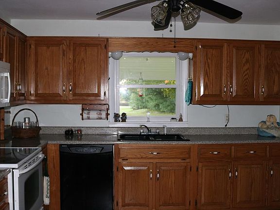 Stone ranch built 1960, original attached garage converted to another room, with closet, laundry, and toilet. Area inside back door functions as small mud room with laundry and toilet to left, main converted garage space ahead, kitchen to right. New metal roof, gutters and shutters 2020. Originally 4 maples, approx same age as house. 2 closest to to house (1in front, 1 behind) removed. Detached garage could be converted to small rental, or backlot could be sublet or sold. Driveway from old road to new. Central gas heat, additional gas wall heater in front room.