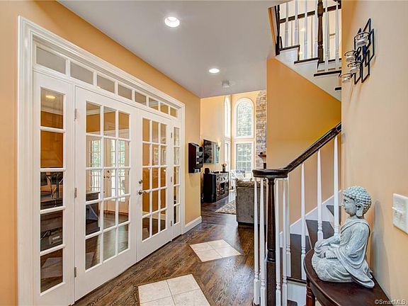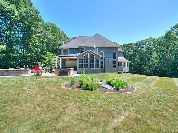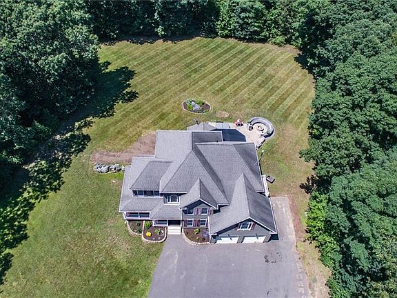 Located close to the Tolland green, near to conservation areas and a state forest, your own custom built 5 bed 3.5 bath oasis awaits! The land is stunning; Sitting on 6.4 acres, you have your own private island with a park-like backyard. With the home being custom built this is not your typical cookie cutter house! As you walk in you are greeted by 9 ft ceilings, crown molding, crawford ceilings and brand-new flooring throughout. Your generous living room includes a fireplace which was custom designed and refinished, an open floor plan and deck access. Adjacent, you will find both a formal and informal dining room with wainscoting, picture windows, a gorgeous buffet, and trey ceilings.There is also a convenient first floor laundry room! Your new kitchen will inspire your inner chef featuring all new SS appliances, granite counters, breakfast bar and more! It is the gourmet kitchen you have always dreamed of. There are 4 bedrooms upstairs including a very large master with a full bath, walk-in closet and balcony. All bedrooms are very private and none share a wall. The walk out basement is completely finished and offers another bedroom, wet bar, movie theatre, game room, bathroom, insulated storage space and more. This home was built for entertainment, especially outdoors! There are multiple sitting porches, an outdoor theatre, custom stone circular fire pit and cooking spaces.