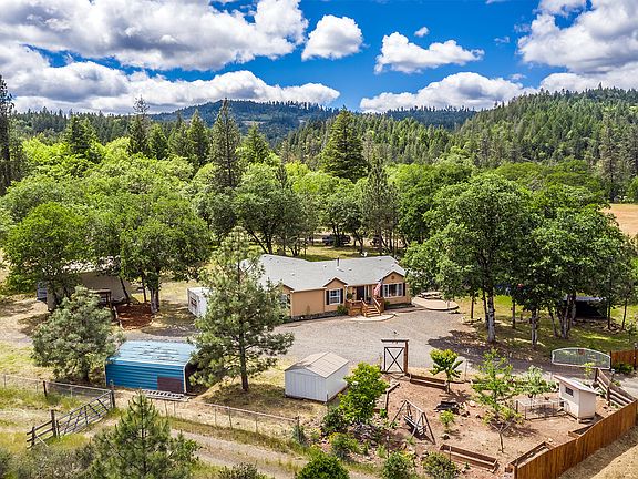 Totally turn-key and packed with value, this home and property are amazing! Situated on a fenced .94 acre lot just a stone's throw from the Rogue River, this 2005 built home has been updated with new flooring throughout, interior paint, newer heat pump, water heater and lots of extras. The spacious floor plan offers 4 true bedrooms, separate living and family rooms, an island kitchen, vaulted ceilings and a large master suite complete with double sinks, step in shower, soaking tub and walk-in closet. The outdoor living is equally awesome! In addition to the home's 2,254 square feet, there is an incredible 480 sf covered and screened in porch, large deck, pool, hot tub, gazebo, 22' x 30' metal RV cover, 18' x 21' equipment cover, fire pit, garden shed, fenced garden and a chicken coop. To top it off the fridge is included along with a certified woodstove and as an added bonus, there's access to Trail Creek directly across the road. This is a rare package, don't let it slip away!
