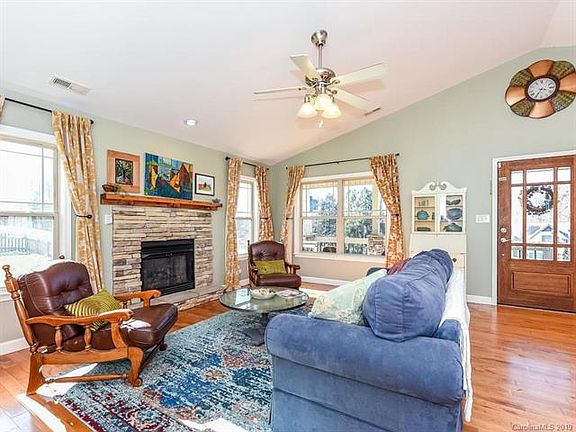 Wonderful home in North Asheville. Only 10 min from DT. This property boasts long-range year-round views of Reynolds Mountain which can be enjoyed off the wrap-around front deck or the half coved back deck. Usable .63 acre lot, with raised-bed vegetable & perennial gardens, garden shed, fully fenced yard, & stone firepit with pergola. Attached 2 car garage with an additional 450SF workshop with roll-up door. Spacious open floor plan with vaulted ceilings & equipped with flush mount surround speakers. Hardwood floors throughout, stone fireplace with custom antique barn wood mantle. Open kitchen with granite, wainscoting, Italian tile back-splash, & stainless appliances. 3 bedrooms, 3 full baths, 1 office, & a family Rm/game Rm in the basement. Master suite with attached sunroom, granite double vanity, tile, & deep soaking jet tub. Laundry Rm with slate tile & barn wood laundry table & sink. Ceiling fans in every room. This home has a bit of everything.