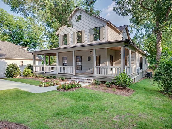 “Hey, Neighbor!”  That’s what you’re likely to hear from either one of the two enormous wrap-around porches of this Modern Farmhouse situated alongside a pedestrian path and cozied up to a cul-de-sac, it's just a leisurely bike ride to schools, ice cream shops, and parks.  Warm gray exterior, custom stonework, and mahogany front door. Site-finished hardwoods.  Custom kitchen cabinets, quartz countertops, trim work throughout.  Designer powder bath and creative drop-zone located on the first floor. The Owner’s Suite features dual vanities, soaking tub & massive marble shower.  Built-in closet system connected to laundry room.  Second floor features 3 bedrooms, 2 designer baths, Office and Gameroom.