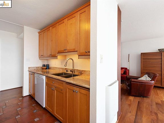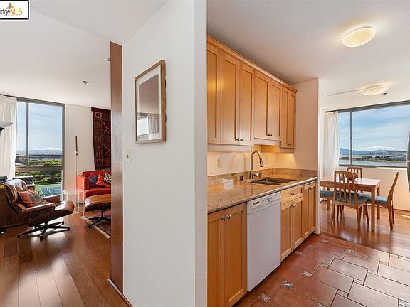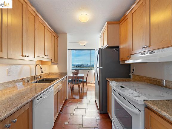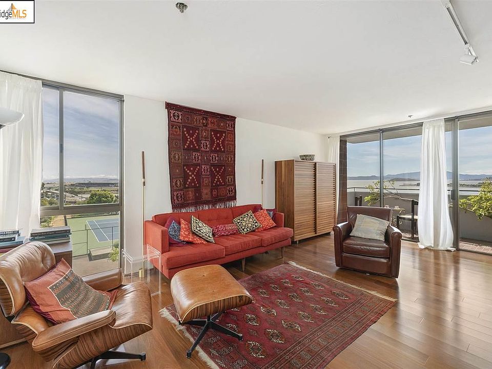 MAJOR PRICE REDUCTION, same awesome Panoramic views from every room of this coveted 1BR/2BA corner unit, with extra den or 2nd BR. The City, the Bay, Mt.Tam, Golden Gate, and incredible sunsets can be viewed from your desk, the tiled terrace, even from the bed in the main BR suite. This unit has substantial upgrades: engineered hardwood floors with Quiet Walk cushioning, hand-painted tile floors in renovated kitchen with new granite counters, upgraded cabinets with sliders; custom-built bookshelves in LR and den/BR2 convey; lighting upgrades; Envi slim-line wall mounted energy-efficient convection heaters; baths and even closets were upgraded as well. HOA fees include 24-hour security, cable and internet service; hot water; gym/tennis courts/pool/spa/sauna. SF express buses at the front door and close to Pacific East Mall (99 Ranch), bayfront parks, El Cerrito Plaza BART, and Solano Avenue, each within 1.5 mi or less.