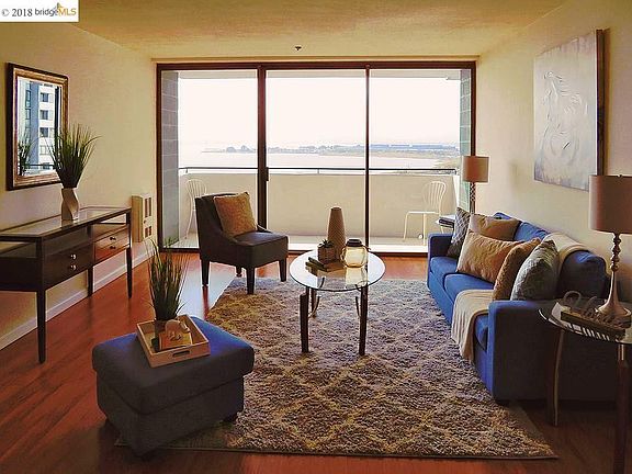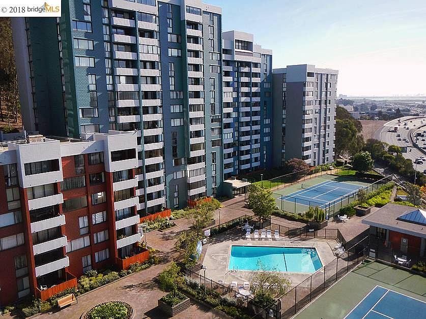 Remodeled 2BR2BA end unit with SF Bay Views. Laminate and tile flooring, new stainless steel appliances, open kitchen . Amenities include: pool,spa,gym,sauna,tennis. Parking and 24 hr. security. Albany's highly rated schools, restaurants and Pacific East Mall all nearby. AC Transit SF Commuter bus right out front. El Cerrito BART and access to Bay Trail not far.