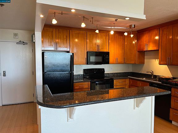 VIEWS, VIEWS AND MORE VIEWS! Beautiful views from this lovely fifth floor condo! This Gateview condo boasts a great location with balcony allowing fabulous views. This bright and spacious one bedroom, one bathroom features beautiful stone kitchen counters and breakfast bar, laminate flooring and has recently been painted. The bedroom has a large window letting in natural light and allowing for more views of the Bay and two closets with mirrored doors. Lovely double doors from the bedroom open to the spacious living area and provide a welcoming flow for easy living. Monthly HOA dues include many amenities including an outdoor heated pool, tennis courts, indoor gym, sauna, parking, 24 hour security, beautiful common area and more! Location can't be beat with easy freeway access and close to shopping and restaurants. This is a must see!