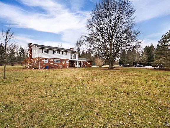 Country living at its finest! This beautifully updated four-bedroom, three-bath custom-built home is set on nearly ten acres and offers exceptional comfort, quality, and privacy. The property features a 40' x 100' barn with water and electric, a greenhouse, and pond, creating a true recreational retreat.The inviting foyer, kitchen, and living room showcase hardwood flooring throughout. The living room is highlighted by a large picture window, crown molding, and a marble, wood-burning fireplace. The spacious country kitchen offers quartz countertops, an island with breakfast bar, abundant soft-close cabinetry, recessed lighting, crown molding, and includes the stove, microwave, dishwasher, and refrigerator. A full bath on the first floor features ceramic flooring and a tiled shower. The cozy family room includes a wood-burning fireplace and sliding doors leading to a covered patio with built-in barbecue, overlooking the wooded grounds and mature evergreens. The adjacent breezeway provides a relaxing retreat and offers a second egress to the basement.The primary bedroom includes two closets, a full bath, and sliding doors to a private sunroom. A guest bath offers a dual-sink vanity and ceramic flooring. Second-floor laundry (which could serve as an additional bedroom) includes the washer and dryer. Additional features include an attached garage and a full basement with glass block windows and utility sink.The adjacent 6+ acre parcel is also available for purchase. This move-in-ready home offers a private setting with endless outdoor enjoyment.Updates include: Windows (2021); Kitchen and hardwood flooring (2020); Roof (2017); Boiler and hot water heater (2016)