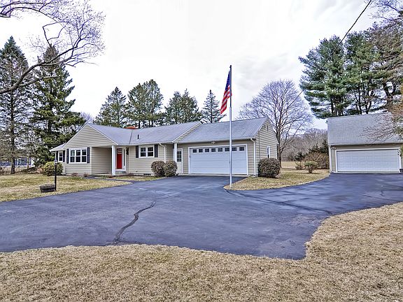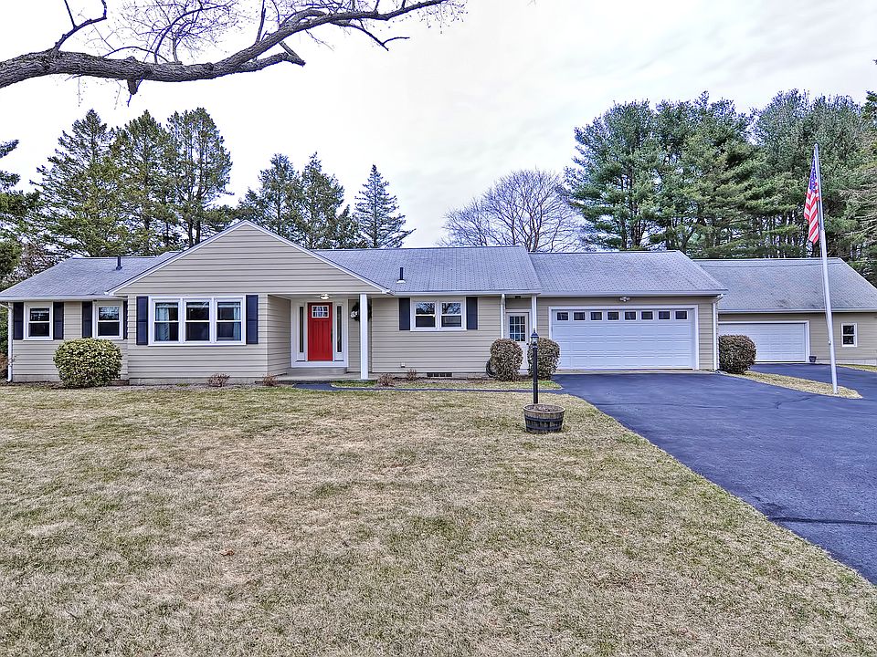WOW WHAT A LOCATION AND WHAT A HOUSE! Fully refurbished sprawling 3 bedroom ranch with attached 2 car garage and a two story detached 2 car garage with work shop area. Nothing to do but to move right in. New windows, custom built cabinets with granite counter tops and stainless appliances, fully refurbished bathroom, and beautiful hardwoods throughout. Spacious private backyard overlooking a 5 acre tree lined field. Close to train station, shopping, restaurants, highway. Great single level living for growing family, commuters, or business owner looking for storage and work shop. New septic system to be installed