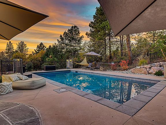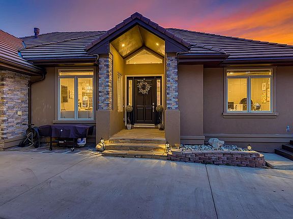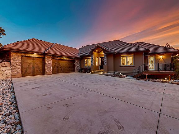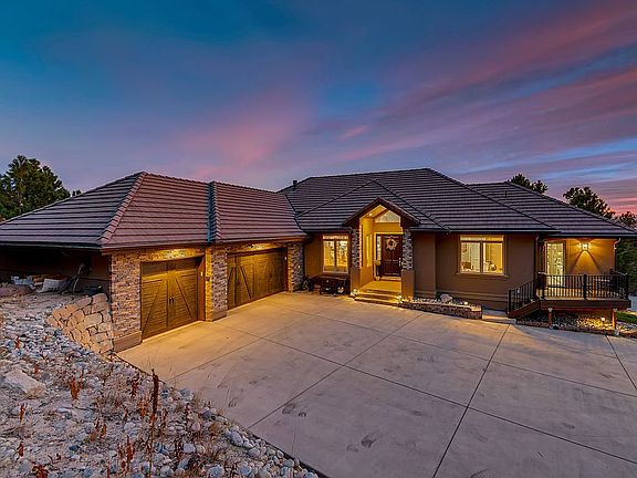 This beautiful home is an opportunity to move into Castle Pines Village, with amazing trails, paths, views, and a great community. Off the deck you have an incredible front range, southwest-facing view, in a raised ranch style home with 3 bedrooms and an office on the main floor, including a primary bedroom with heated bathroom floors. Complete remodel in 2016. Brand new Kitchen with 15' Island, wolf range, wine fridge, and completely open. Above ground, the basement has 3151 square feet of finished walkout space with 2 large bedrooms, 2 large bathrooms, storage, workout room, full kitchen, wine cellar, and rec area. Home sits on a 1.12 Acre premium CPV lot leading to a nice nature trail for an easy hike from your own backyard! Granite counters in kitchen and all full bathrooms, a generous center Trex deck off the main living area, and a patio off the walkout basement with a dry below system so you can use it in the winter! Beautifully landscaped yard, new large private driveway, a brand new resort area with 16'x32' pool and spa and full patio and landscaping all built-in 2018. The fence around the pool is amazing. Complete enclosure when you want it, but totally open feel and more space for entertaining when you remove the detachable side of the fence! Completely remodeled primary bathroom with heated floors, large shower with tub inside. Walk-out balcony from primary bath to the pool area, for easy access to a shower after the spa. Dog run behind the three-car garage, with a shed nearby for even more storage than the oversized basement storage! New stonework and garage doors. Upgrades galore! This is a must-see home. Views are phenomenal from the great room, living room, and primary bedroom, and landscaping makes this home very private. The Village is a prestigious private, gated area with pools, friendly and helpful security, gym, tennis courts, paths, playgrounds, and more! It is surrounded by one of the top-rated golf courses in the nation.