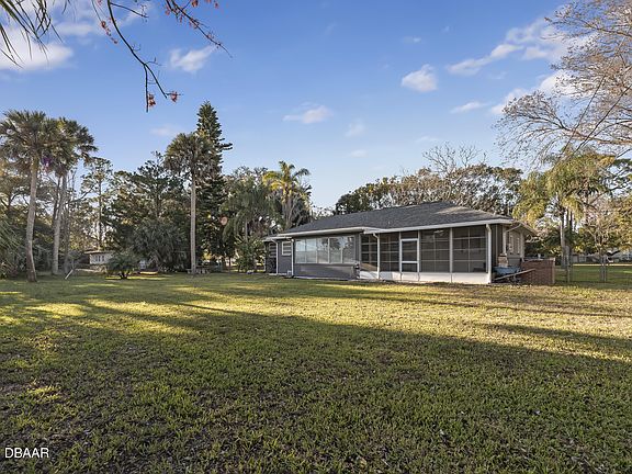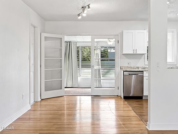 PERFECT 3/2 in the heart of South Daytona resting on an oversized lot and full of upgrades! Talk about curb appeal! The owners have added new sod and new plants that beautifully accent the freshly painted exterior of this home. With a 2019 Roof, Gutters, AC, and more, you can move into this home with peace of mind! Through the front door, you are greeted with beautiful hardwood floors and large windows, allowing the Florida Sunshine to pour in. The kitchen is newly upgraded with new white cabinets and stainless steel appliances, and sits next to a dedicated dining space with french doors showcasing your 210 sq ft room with built in shelving, large windows, and permanent and separate AC. Perfect for a hobby room, guest room, or office! A second rear porch rests behind the garage, and