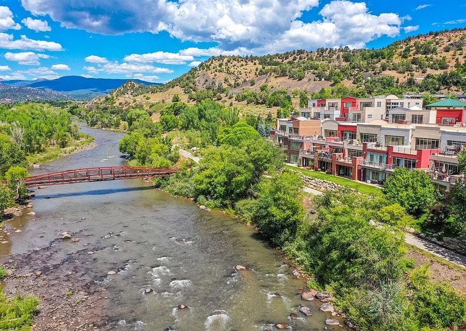 Ideal turn-key low maintenance living along the Animas River!  Enjoy all that Durango has to offer with this lock-and-leave lifestyle, providing you the opportunity to live just steps away from the Animas River and its accompanying paved river trail, just minutes from world-class mountain biking and hiking trails, as well as historic downtown.  This one level, beautifully cared for condo offers easy access directly from the main level courtyard.  Step inside to new engineered wood flooring that leads you to the open concept kitchen/living/dining area making entertaining a breeze, especially from the spacious deck overlooking the river with views of the La Plata Mountains to the north.  The deck is piped for natural gas, providing the perfect place to enjoy grilling with a view.  Inside, the high ceilings provide a spacious feeling with floor-to-ceiling natural light.  The kitchen features granite counters and stainless steel appliances and vent hood while the living room offers a cozy gas fireplace and built-in bookcases as a focal point.  The expansive primary suite has generous closet space with custom built-ins and an attached bath with double sink vanity and separate shower and soaking tub.  A half bath, additional closet space with organizers, and laundry area complete the residence.  Additional features include custom solar shade blinds, air conditioning, a private and secure 7' x 7.5' storage unit, and dedicated garage parking space conveniently located next to the central building elevator.