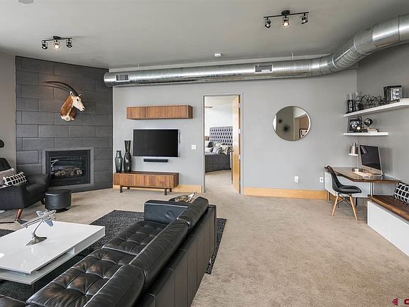 Luxury living with huge views of the Animas River await you in this spectacular Rivergate Loft. The well appointed home offers an open floor plan full of natural light and contemporary styling encompassing nearly 2800 square feet. The living room is bursting with light from the walls of windows offering views of the Animas River. A gas log fireplace with tile surround adds an additional warm feel. The kitchen is immaculate with stainless steel appliances, ample cupboard space and beautiful granite counters including a large island with bar seating. A formal dining area is located between the living and kitchen - making entertaining a breeze. Sliding glass door access to the balcony patio allows for taking the entertainment outdoors. The master suite is spacious with soaring ceilings, walls of windows and a luxurious master bath with walk-in shower and deep soaking tub. A loft office/den area is accessed by a spiral staircase. Two additional bedrooms round out the home. Rivergate offers luxury loft living at its finest and allows for covered, heated parking for two cars as well as a 8x8 owner's storage unit. If you're looking for luxury, maintenance-free, turn-key Durango living - this is it!
