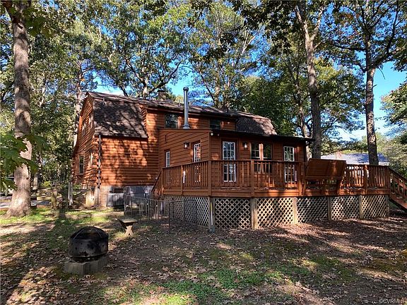 This is a wonderful, quintessentially American Log cabin home set in a private country location, yet only 10 minutes away from all the major routes and Short Pump town centre and all of its comprehensive amenities. It sits on a level lot of 1.2 acres and is surrounded by lawn and mature trees and shrubs. The oversized double garage has a room with above it with two closets with Heat/Air, along with two additional sheds that both have had Heat/Air installed in 2020. Other recent upgrades include: 19 trees removed, electrical upgrades ($5500), New roof 2019, Exterior Paint 2019, vapor barrier 2018, Upstairs A/C 2015, well service 2019, Chimney service 2019 and landscaping in 2020. Relax on your inviting and capacious country front porch. This home has been lovingly upgraded and maintained by its current owner and comes with a 12 month home warranty.