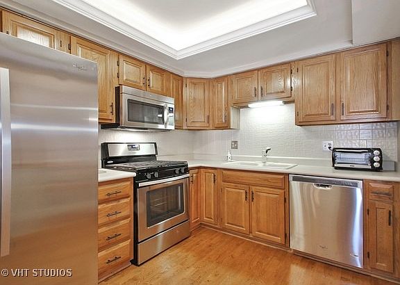 Spacious 2 Bed/2 Ba condo, located steps to restaruants,shopping and train. Featuring: in unit washer/dryer,heated garage,balcony and elevator. Open layout freshly painted, kitchen includes new SS Appliances. Master Suite w/Walk in closet & separate shower. Move in and ENJOY !!!!