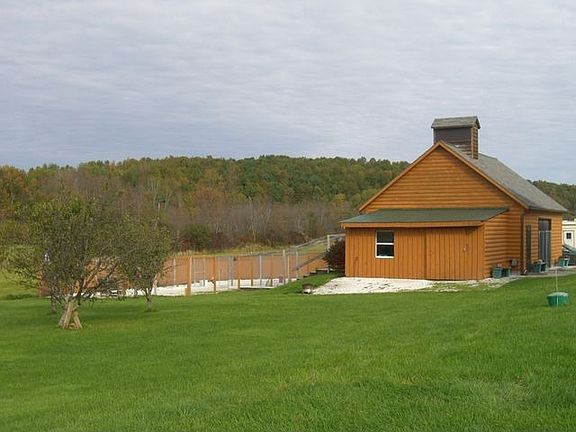 Visible and accessible Hinesburg location with income potential. Former 975 sq. foot sugarhouse currently houses busy dog kennel, but suitable for other uses. 12 sunny, usable acres abut conserved land. Lovely views and fruit trees.