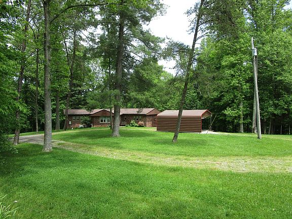 This private yet conveniently located home sits on 3.93 acres and is less than 5 minutes to the small country town of Harrisville, WV, and borders the beautiful North Bend State Park. The paved driveway leads up a small hill where the home is nestled among the trees. The dwelling has 3 bedrooms, 1 bath, with an open concept for the living room, dining and kitchen area, a small family room or den, and a utility room. The living area has a fireplace with wood stove insert and numerous windows looking over the deck. All appliances are included in the sale. The large deck wraps around the back of the home and each bedroom has access to the deck. The indoor climate of the home is controlled by a forced air system with central AC. There is also a whole house generator. Additional structures include a 2 stall carport, storage / equipment shed with a lean-to and a small storage building. There is another home site in the back yard area with water. A nice, fairly level back yard offers plenty of room for gardens or recreation. This would make an ideal starter home or a place to enjoy the golden years since everything is on one floor. This property is priced at $135,000.00.