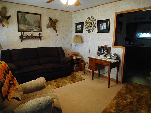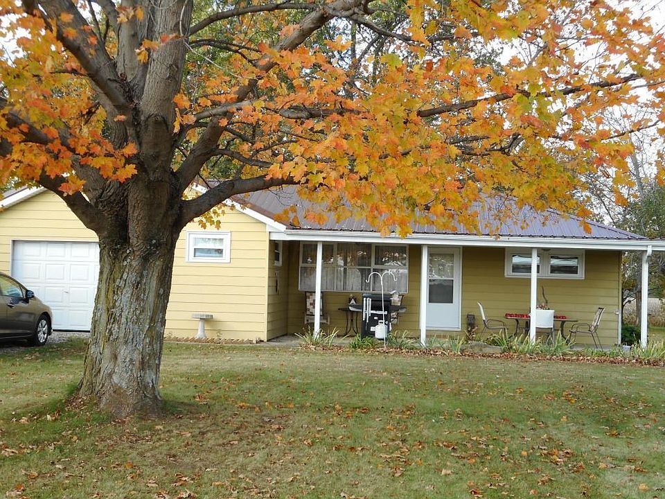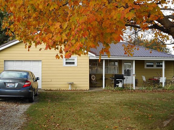 Nice ranch that offers a pretty lot with mature trees.Three bedrooms, kitchen has been updated with pretty oak cabinets. Newer metal roof, most of the windowsare thermal windows. Some laminate flooring. Recently updatedheat pump. Well and septic.