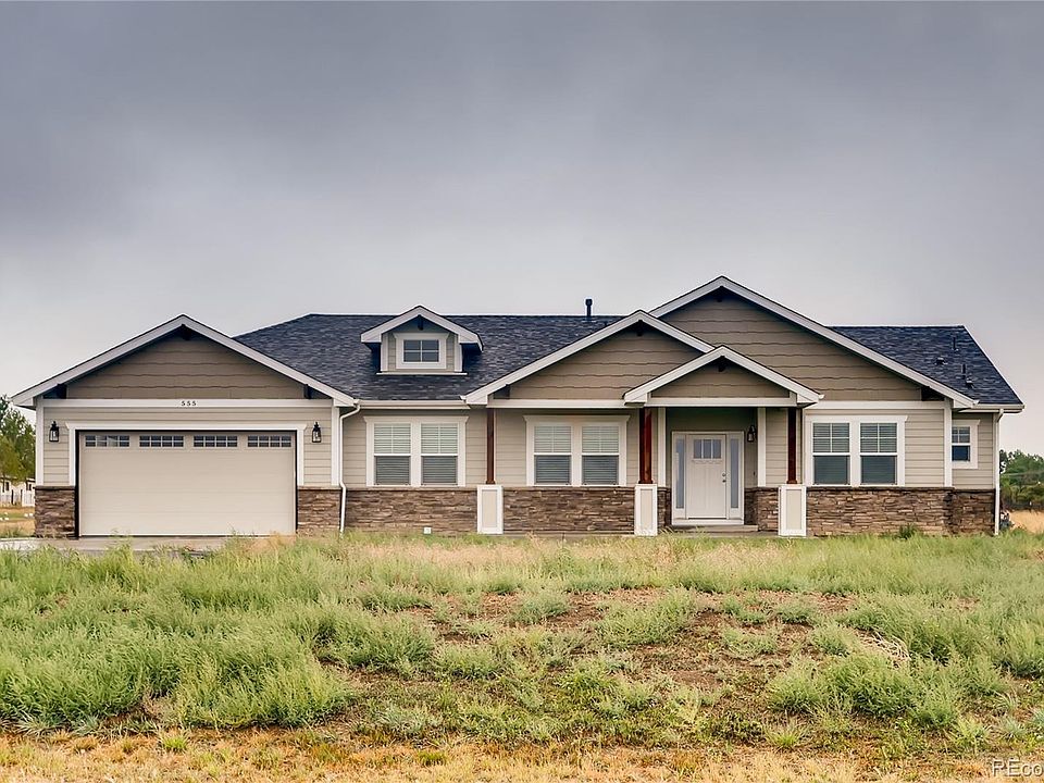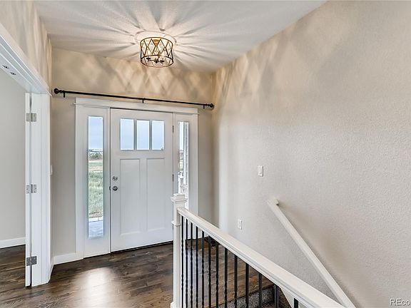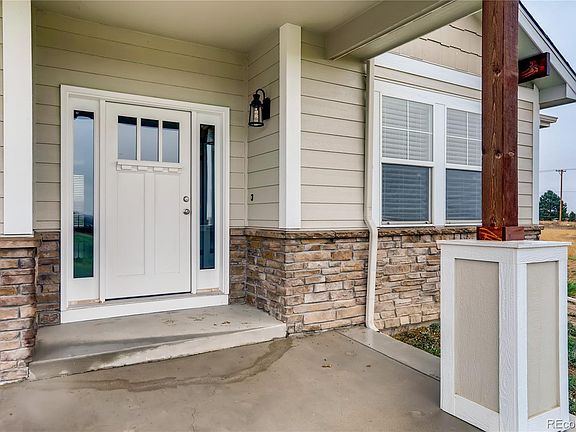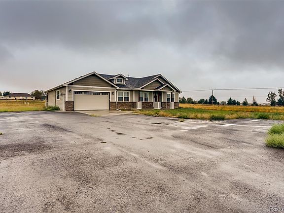Custom built home with only top of line finishes! Home sits on 1 acre of land with paved road, public water, no HOA and has RV parking. Beautiful oak hardwood floors, artisan tile floors and carpet throughout. You will love the stunning granite countertops and center slab granite island with breakfast bar and butler pantry equipped with sink. Kitchen features stainless steel appliances, walk in pantry. The high-end cabinets with dove tail construction and soft close drawers and doors put a nice touch to the kitchen of your dreams. The eating area of your dream kitchen opens up to a big covered patio in the back where you can enjoy your coffee, family cookouts or just a night of reading. Living room features vaulted ceilings, breathtaking panoramic window panel and stone hearth gas fireplace for those chilly nights. Master bedroom with a lavish glass and tile walk in shower, double sinks and a walk-in closet equipped with organizers. Right after the foyer is the 4th bedroom which would make the perfect home office! Home features a 3 car garage with an 8' door and tandem bay for cars, toys or even a workshop. Only 3 minutes away from I-76 and 20 minutes away from Denver or DIA. This home will not last on the market, do not miss your opportunity.