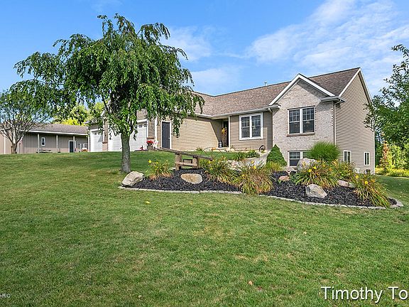 10 plus acres of privacy with additional 9.5 acre building site available! Check out this custom walkout ranch at the perfect location! Convenient to everything and still the peace and quiet you want in a hobby farm. There's plenty of wildlife and deer along with So many possibilities with this property plus nearly 3000 sq ft of living space which includes 5 Bedrooms and 3.5 baths. 3.5 attached finished garage with second-service-door-access to 444 sq ft deck. 24x40 Pole barn with large cement apron, electric and 40x6 foot lean-to. This well maintained home features a wood or gas log (potential) fireplace in the living area plus a full wet bar. Master suite with full bath and main floor laundry. You'll love the open layout and large lower level family room and a fireproof 5x5 secured gun room. Low utility bills in this well insulated home. Wired for a generator. Basketball court off the front of pole barn. Beautifully landscaped. In floor heating lower bath.