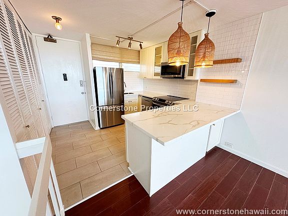 Enjoy living in this partially furnished, 1 bedroom, 1 bathroom, 1 parking split-level condo at the Ala Wai Plaza Skyrise in McCully/Moilili. This unit has views of Diamond Head, mountain & city. In addition, this unit is near bus lines, schools (Ala Wai Elementary School & Iolani School) & Ala Wai Neighborhood Park. PROPERTY DETAILS: - Unit Type: Condo - Split Level - Approx. Square Footage: 684 - Year Built: 1971 - Bedrooms: 1 - Bathrooms: 1 - Parking Stall: 1 covered UNIT FEATURES: - Stacked washer/dryer - Dishwasher - Disposal - Refrigerator - Electric stove/oven - Microwave Range hood - 2 window AC's in Living Room & Bedroom - 2 Covered Lanais - Window Coverings: Curtains - Flooring: Ceramic AMENITIES: - Guest Parking - Elevator - Pool - BBQ - Secured Access - 24-hour Security Guard - Key-Entry - Site Manager UTILITIES: - Included: Water/sewer, basic cable & internet. - Tenant Responsibility: Electricity, additional cable & internet, phone, yard, pest & gas (if applicable) LEASE TERMS: - No smoking - Sorry, No Pets (per bldg) - Available NOW - Lease Length: 6 months - 1 year - Professional cleaning required upon move out by an approved vendor of Cornerstone Properties. - Renter's insurance required: with $300,000 liability coverage and Cornerstone Properties listed as additionally insured or additional interest. - All adults 18 years old and older must apply. - Application fee: $30 (Non-refundable) PROPERTY CODE: 1488MAN Cornerstone Properties, LLC: RB-20789 *DISCLAIMER: Cornerstone Properties is not responsible for any inaccuracies or misprints on this website or other subsequent websites and reserves the right to make changes without notice. Our rental units are considered available until an applicant is approved, the security deposit is paid, and the lease is executed. Please be advised that although a property is listed as available, it could be in the process of a lease signing or may have just been rented. Please call our office to inquire. All availability dates are approximate and not guaranteed.