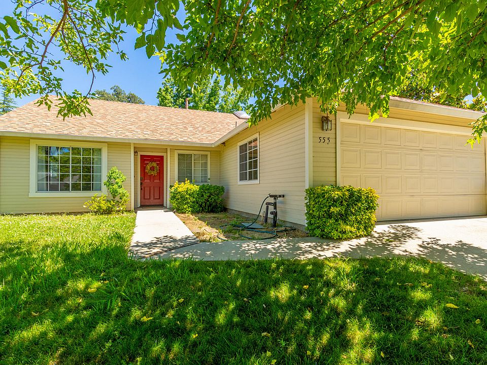 Sought after Blue Oak Terrace Subdivision! Bright and open floor plan with spacious kitchen. Separate family and living rooms, with high vaulted ceiling. Fire place in family room New roof and A/C. Updated flooring and paint. Vaulted ceilings with large view windows. 2 car garage, Centrally located, close to shopping, restaurants and the river trail.