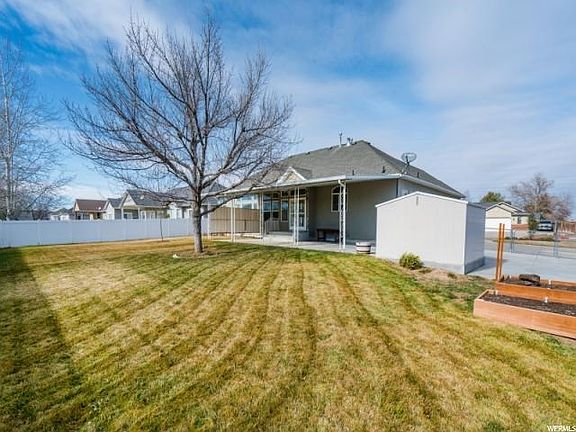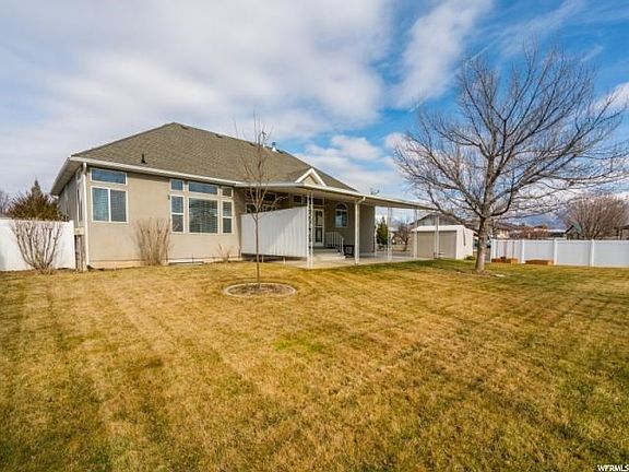 Fresh on the market this attractive rambler features new carpeting and new blinds throughout. Open Great room with vaulted ceilings, corner gas fireplace, recessed lighting, French doors out to a relaxing covered patio. Kitchen features a large island and built in desk and new stainless steel appliances just installed! Solid surface countertops ample cabinets to store everything you need to for your kitchen. Lovely open dining area that any size table would fit. Laundry room and half bath off of kitchen and garage. Three spacious bedrooms and full bath. Master bedroom features walk in closet, grand master bath with separate jetted tub and shower. Triple crown molding and two tone paint. Basement features large family room with custom builtin book cases, recessed lighting and separate den and 3/4 bath. The expansive back covered patio offers enjoyment for family gatherings. Separate shed all cemented convenient for more storage. Fully fenced yard, auto sprinkler system and corner lot. Super convenient to HWY 193 and I15, close to schools and shopping. This is the one!