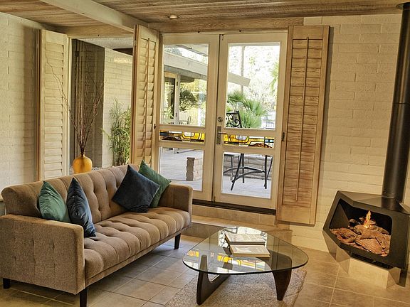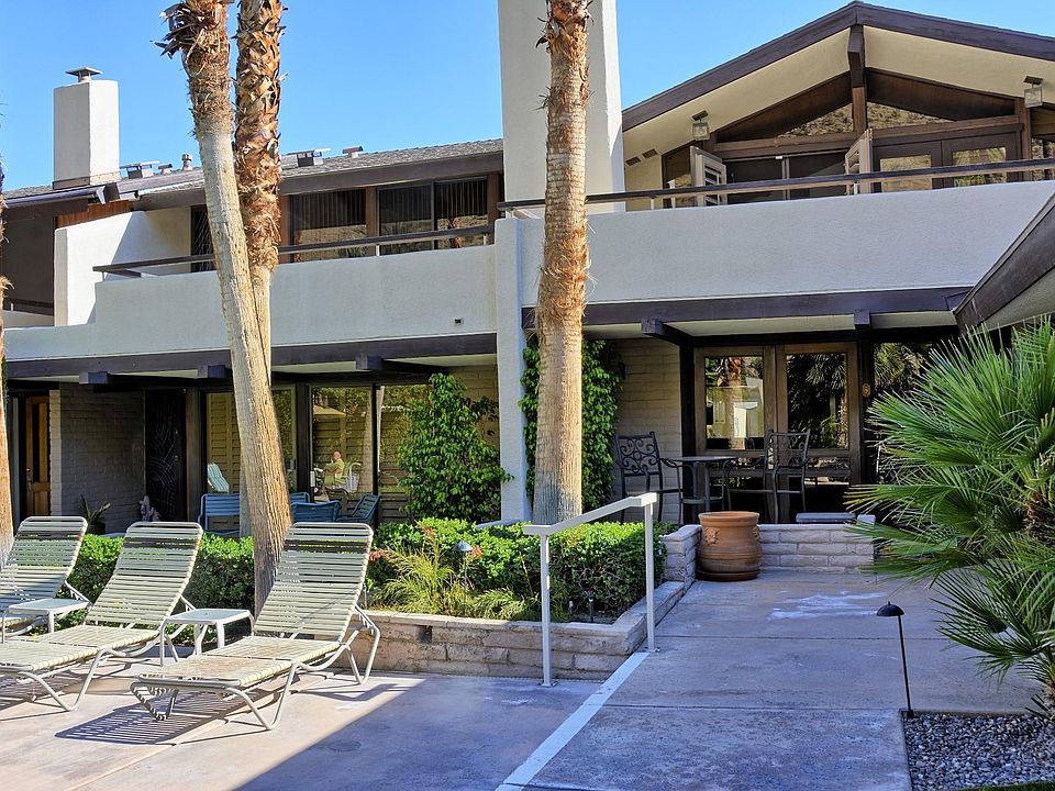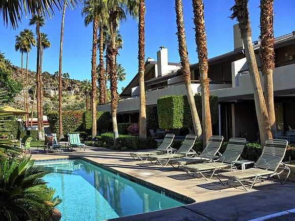 This just has to be one of the finest locations in Palm Springs! Properties like this do not become available very often. At the top of the Historic Tennis Club and nestled at the base the San Jacinto Mountains with tremendous views, this property puts you right at the edge of the new downtown village. Take a walk to the Kimpton Rowan and take in the rooftop bar and restaurant, or stroll on down to the famous Spencer's Restaurant at the heart of The Tennis Club. Everything you want to do downtown is so nearby. This spacious 1-bed/1-bath also has a poolside patio in front and another more intimate patio off the master bedroom and the kitchen. Large living and dining room, too.